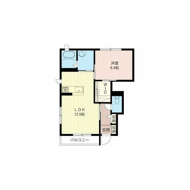 1LDK(LDK12.0帖 洋室6.4帖) |